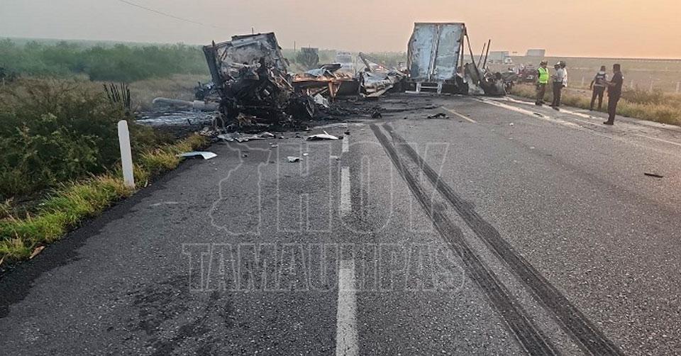 Dos muertos deja encontronazo e incendio de tráileres en Nuevo Laredo