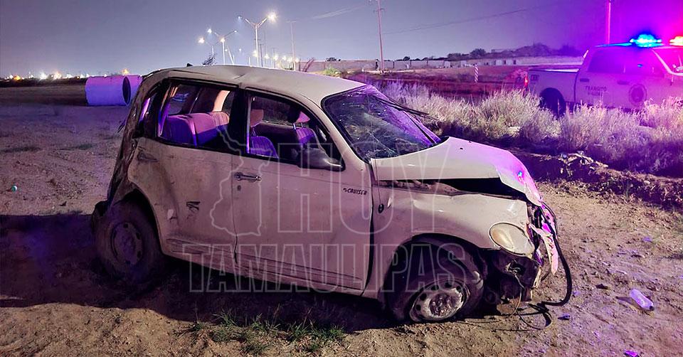 Mujer provoca choque con volcadura en Nuevo Laredo