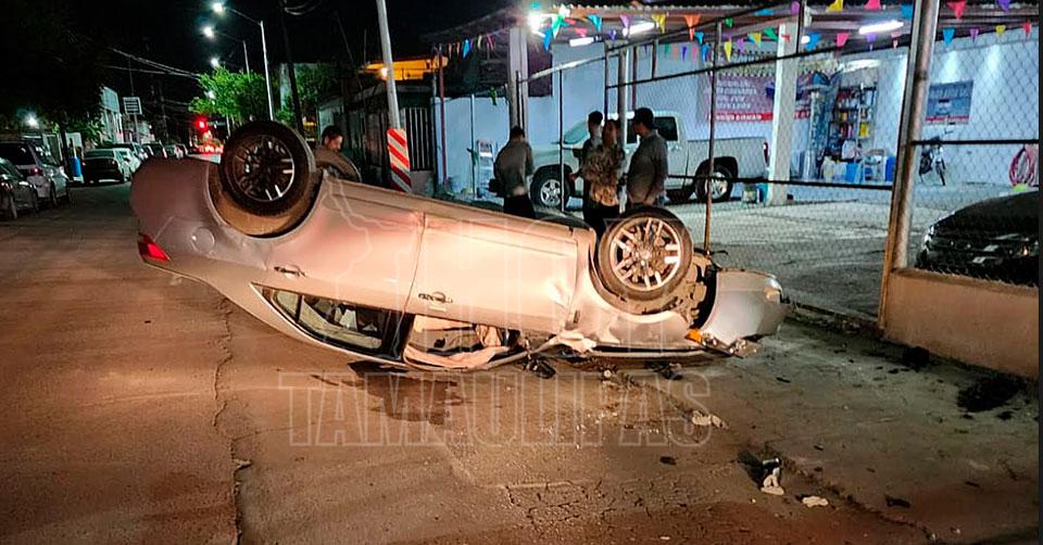 Burla alto, lo chocan y vuelca en Nuevo Laredo