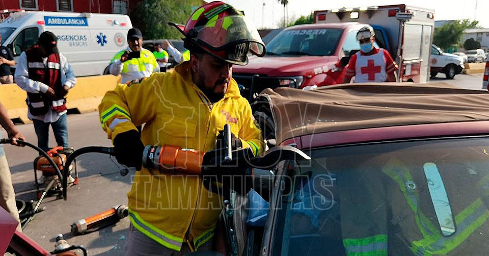 Brutal colisión deja cuatro heridos; uno atrapado en Nuevo Laredo