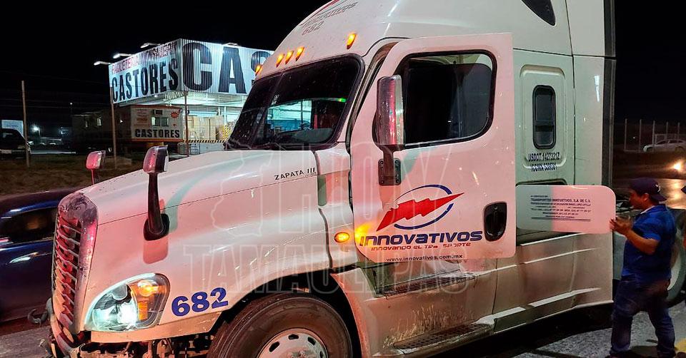 Trailero queda mal herido al chocar y herirse en Nuevo Laredo