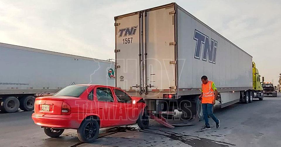 Se estrella contra tráiler en Nuevo Laredo y sobrevive