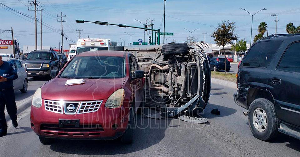 Mujer provoca choque con volcadura en Nuevo Laredo