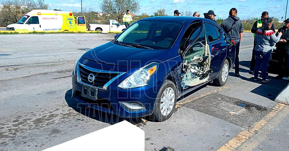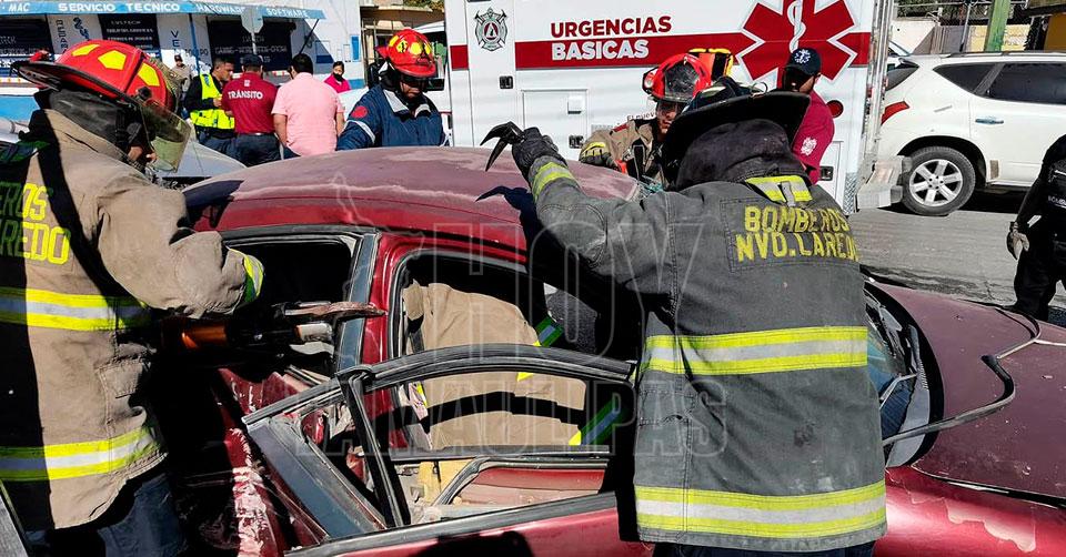 Mujer queda atrapada y herida en auto tras choque en Nuevo Laredo