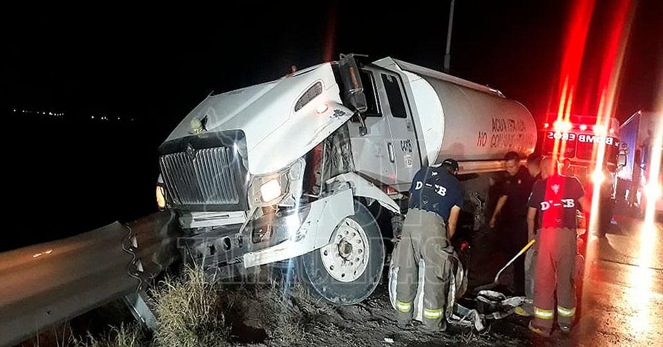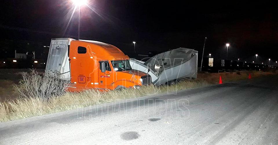 Se salva trailero tras sufrir accidente en Nuevo Laredo