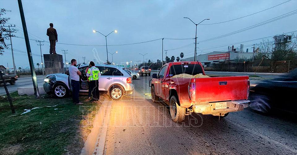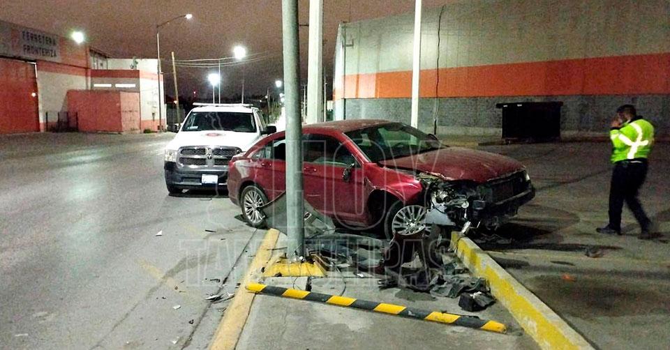 Abandona vehículo tras chocar poste en Nuevo Laredo
