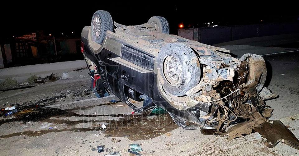 En Nuevo Laredo: Vuelca pareja en camioneta
