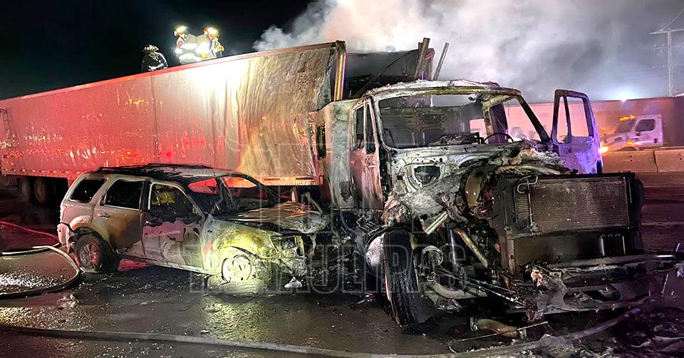 Salvan sus vidas tras choque con incendio en Nuevo Laredo