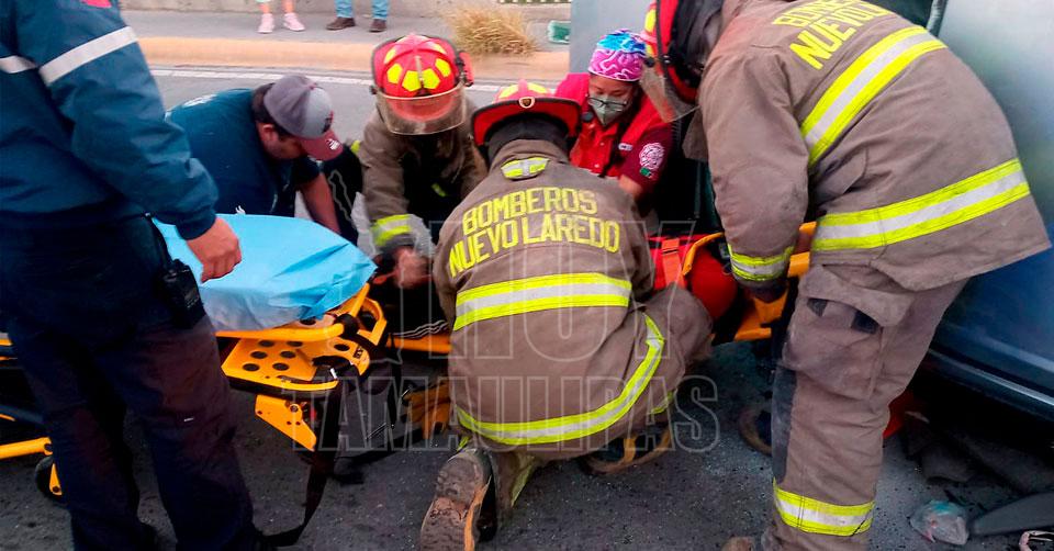 Queda hombre malherido en volcadura en Nuevo Laredo