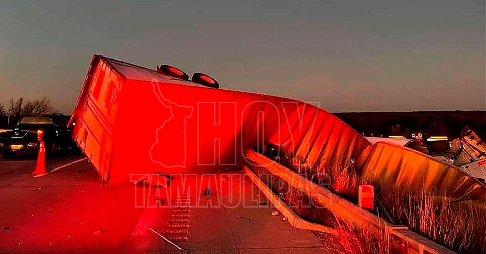 Volcadura de tráiler deja dos heridos cerca de Nuevo Laredo