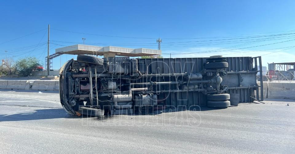 Volcadura de tráiler con pollo en carretera de Nuevo Laredo causa congestionamiento vial
