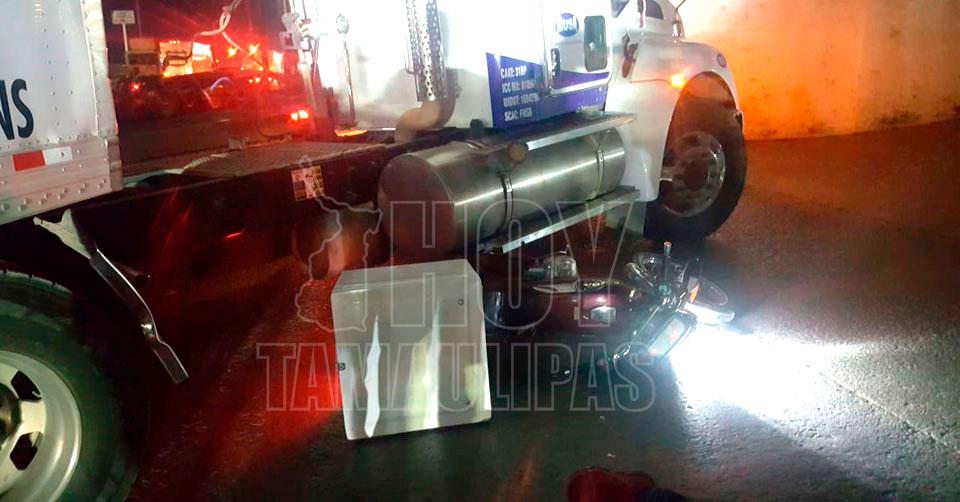 Motociclista se estrella con tráiler y acaba herido en Nuevo Laredo