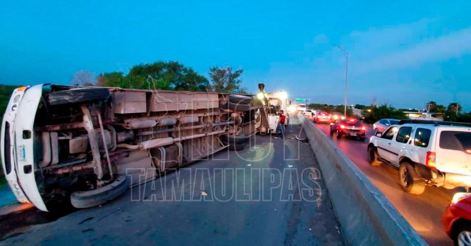 Vuelca camión de transporte de personal en Nuevo Laredo; 15 heridos