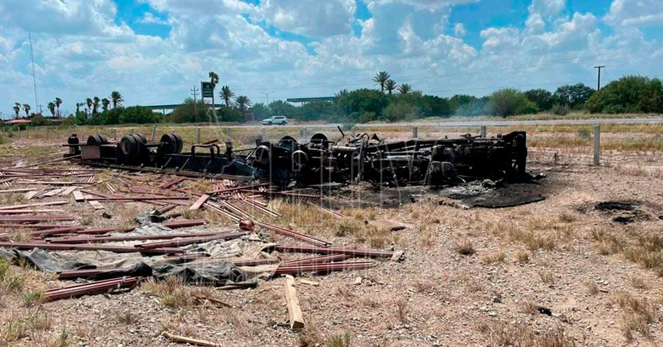 Choca tráiler, vuelca y se incendia cerca de Nuevo Laredo