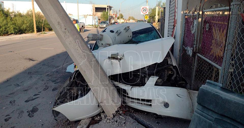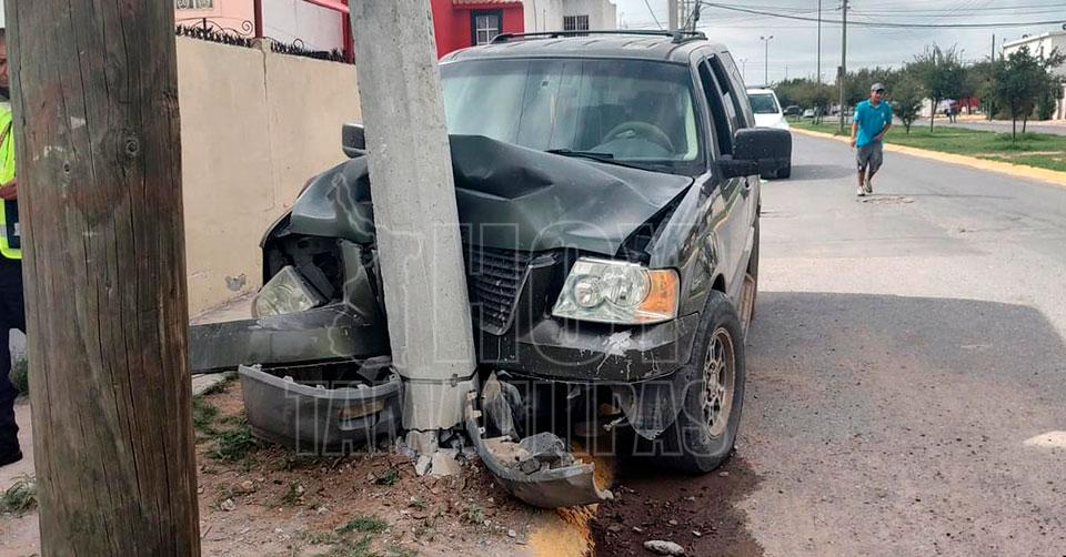 Pega contra poste de concreto y escapa a pie en Nuevo Laredo