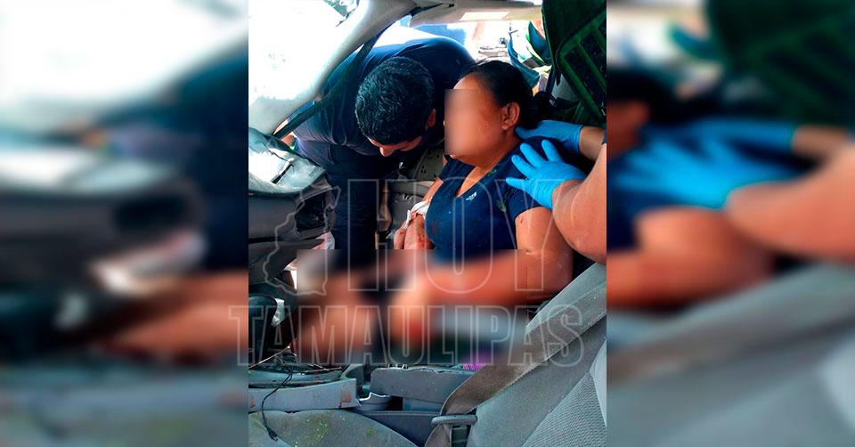Mujer queda atrapada tras choque con tráileres en Nuevo Laredo