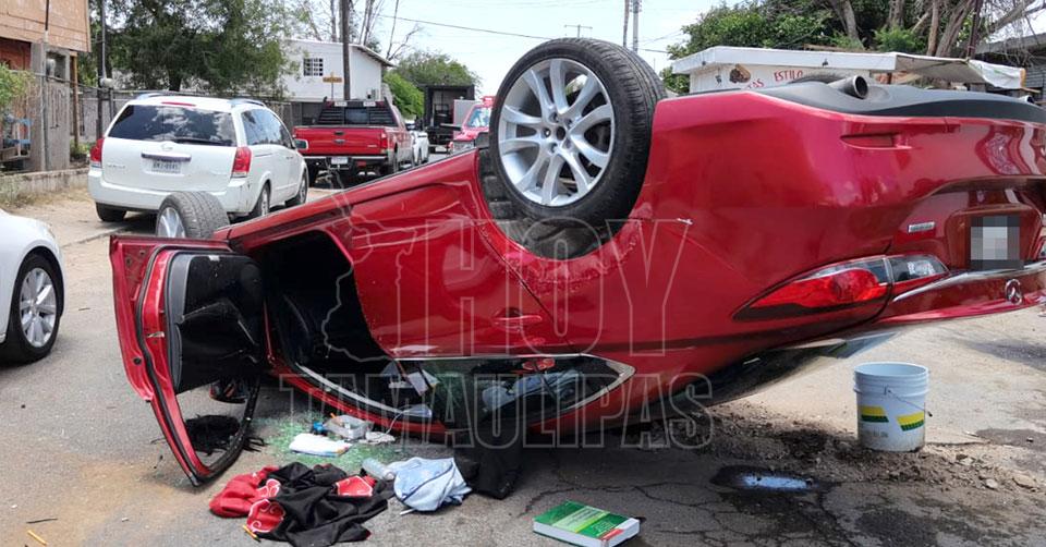 Se distrae en el celular, choca y vuelca en Nuevo Laredo