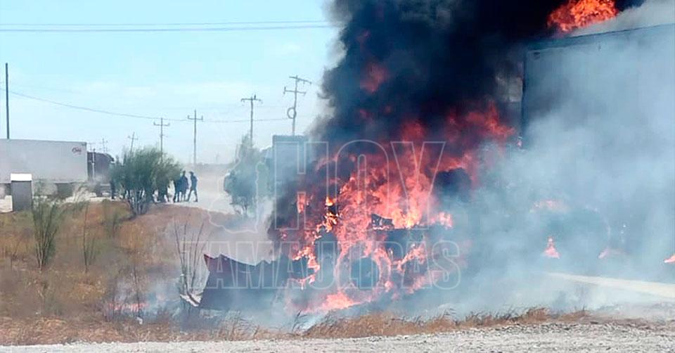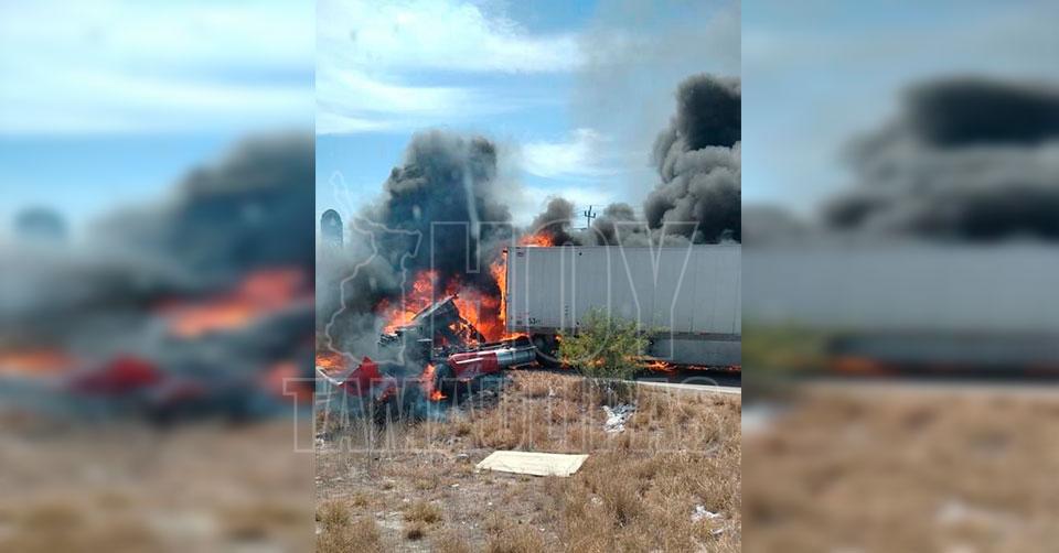 Muere chofer calcinado en choque de tráileres en Nuevo Laredo