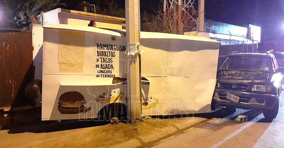 Daña puesto de tacos con su camioneta en Nuevo Laredo