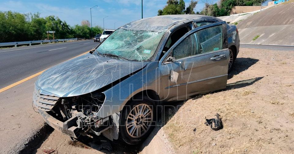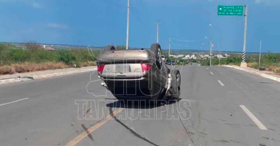 Dejan abandonado vehículo tras volcadura en Nuevo Laredo