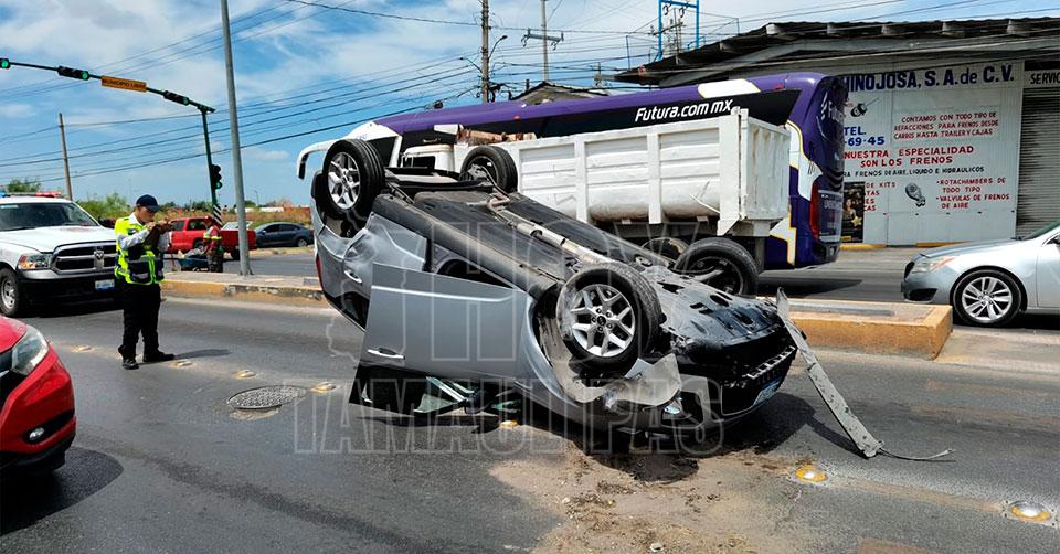 Deja choque con volcadura sólo daños en Nuevo Laredo