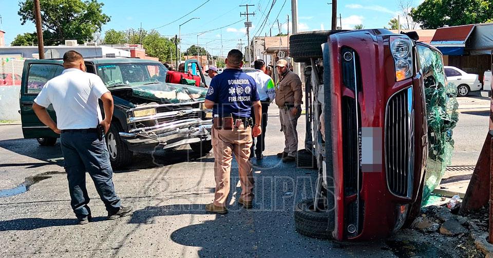 Choque con volcadura deja tres heridos en Nuevo Laredo