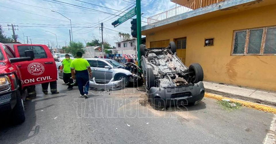 Choque con volcadura desata movilización y deja daños en Nuevo Laredo