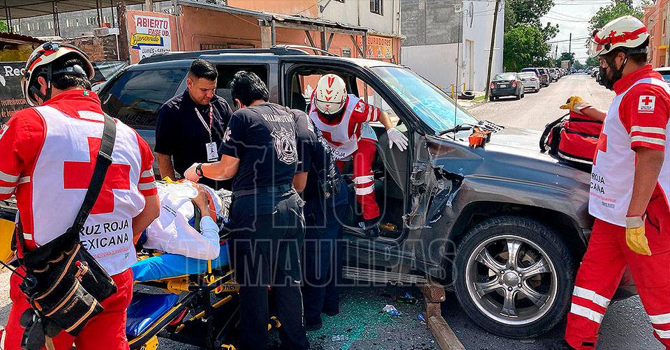 Mujer queda herida y atrapada tras brutal choque en Nuevo Laredo