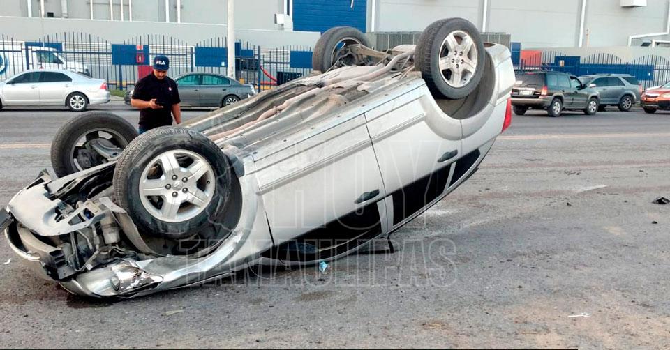Choque con volcadura deja dos heridos en Nuevo Laredo