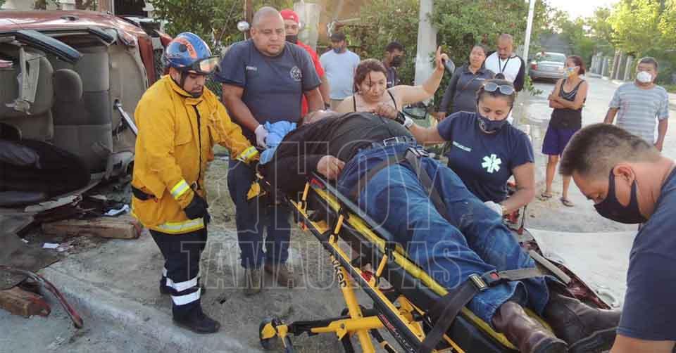 Queda hombre prensado tras volcadura en Nuevo Laredo
