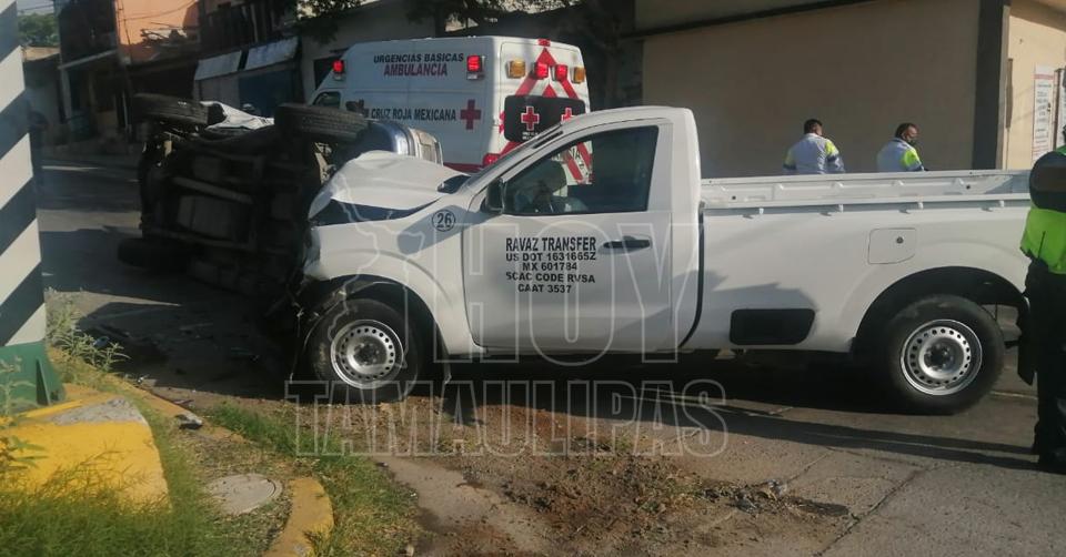 Deja cuantiosos daños choque con volcadura en Nuevo Laredo