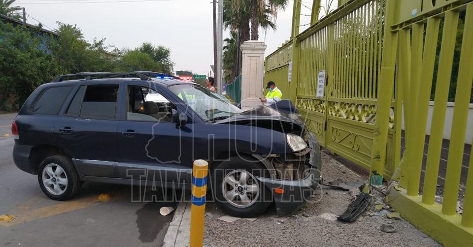 Se estrella contra portón y cerca de parque en Nuevo Laredo