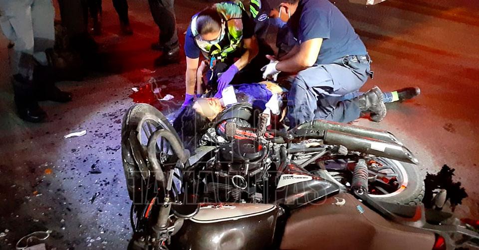 Queda grave mujer motociclista en accidente en Nuevo Laredo