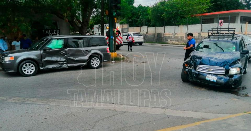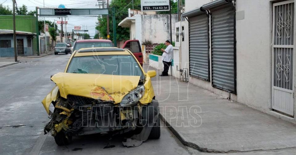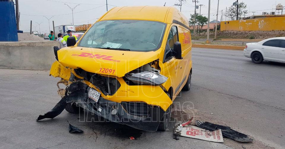 Destroza camioncito de paquetería al chocar en Nuevo Laredo