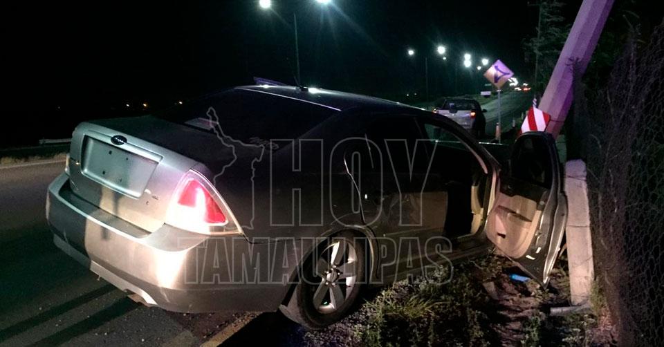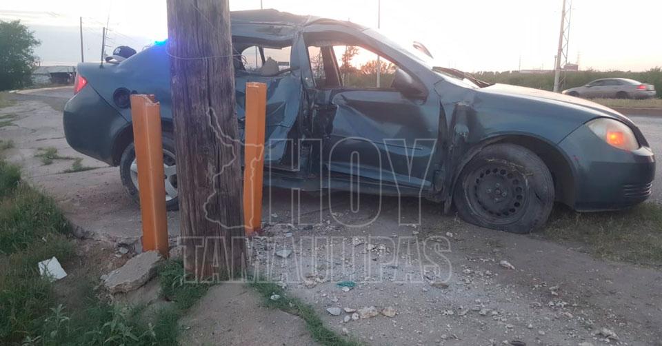 Abandonan vehículo tras chocar contra poste en Nuevo Laredo