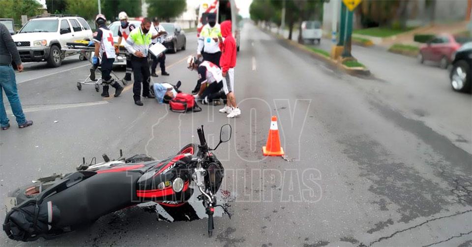 Motociclista lesionado de gravedad tras accidente en Nuevo Laredo