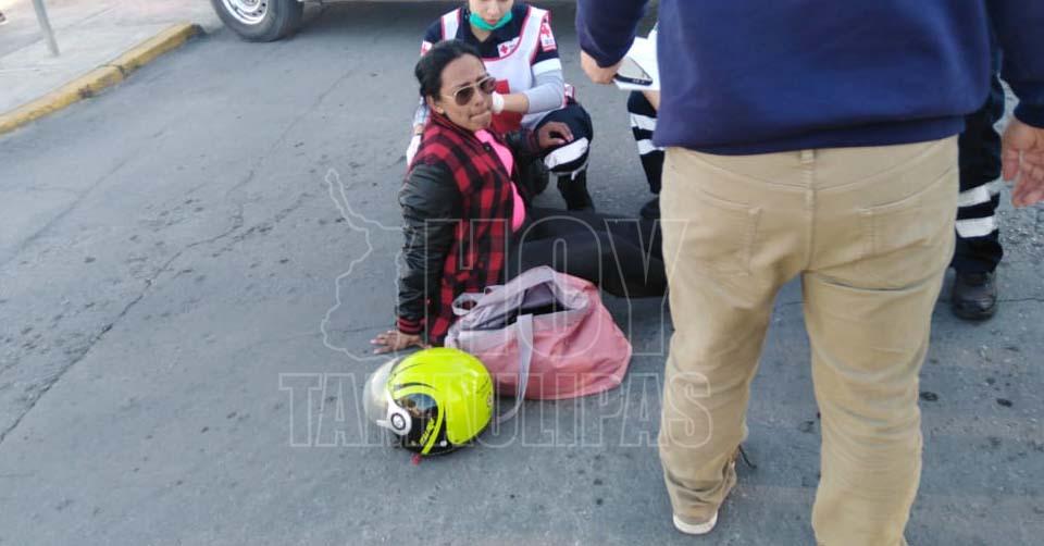 Omite alto en su motocicleta y la impacta coche en Nuevo Laredo