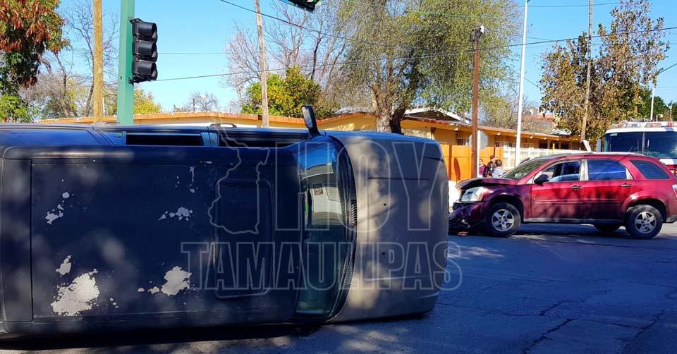 En Nuevo Laredo: Choque acaba en volcadura