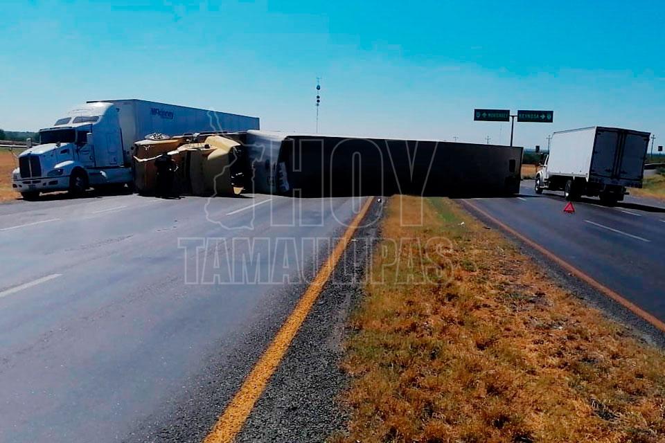 Sobrevive trailero a volcadura en Nuevo Laredo