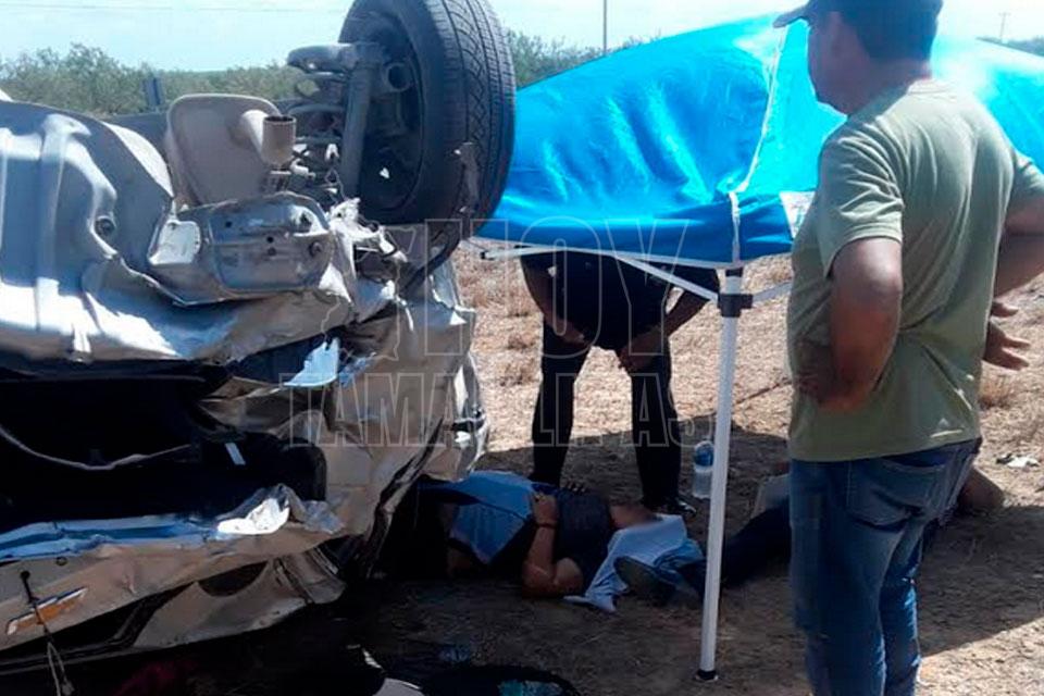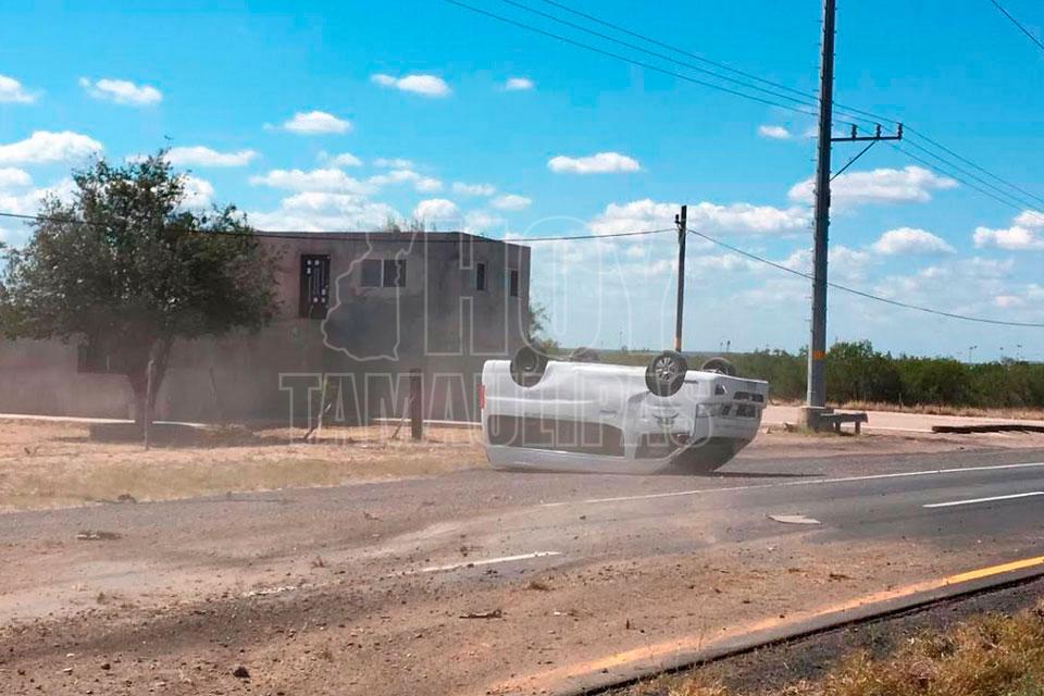 Dos lesionados deja volcadura en la Ribereña cerca de Nuevo Laredo