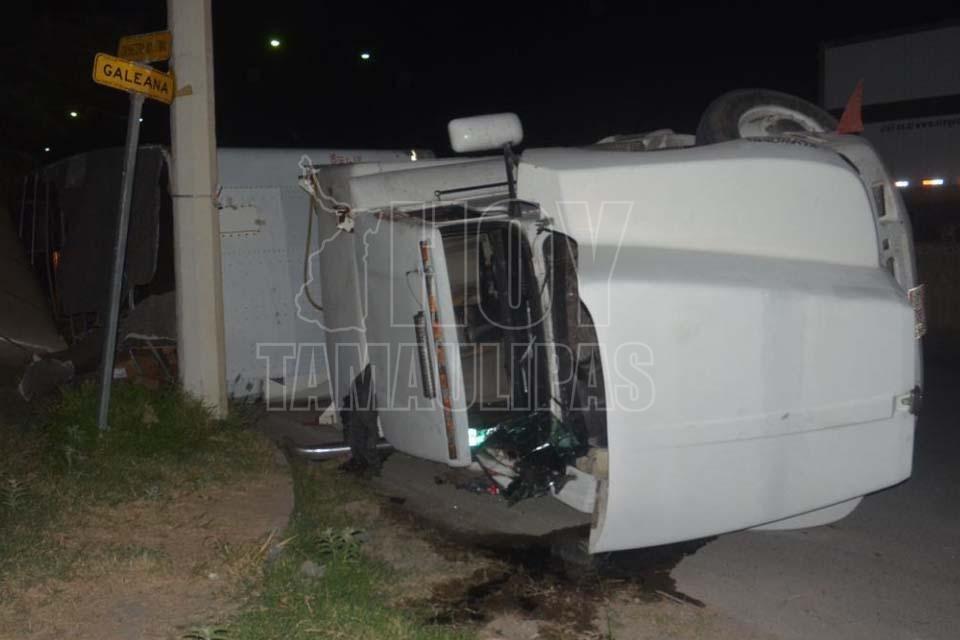 Abandonan camioneta tras volcadura en Nuevo Laredo