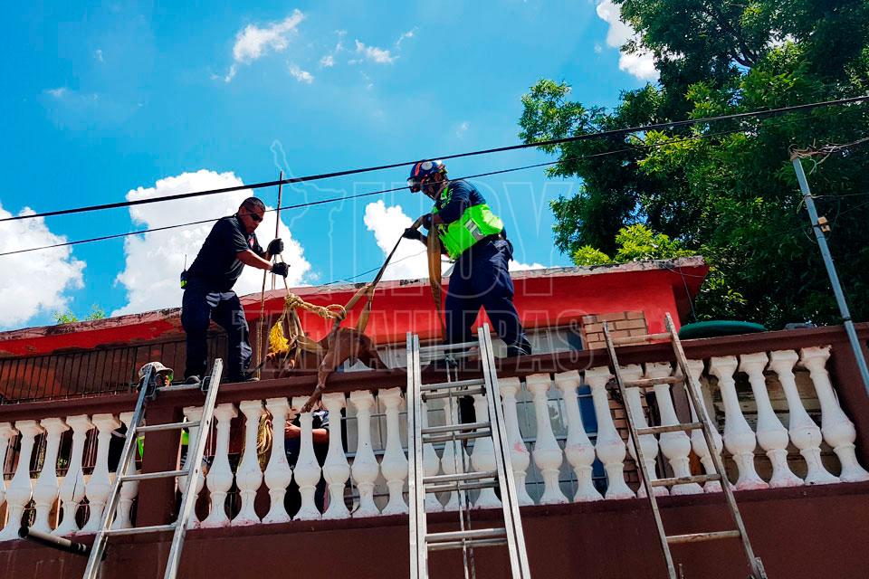 Rescatan bomberos a perro abandonado en Nuevo Laredo