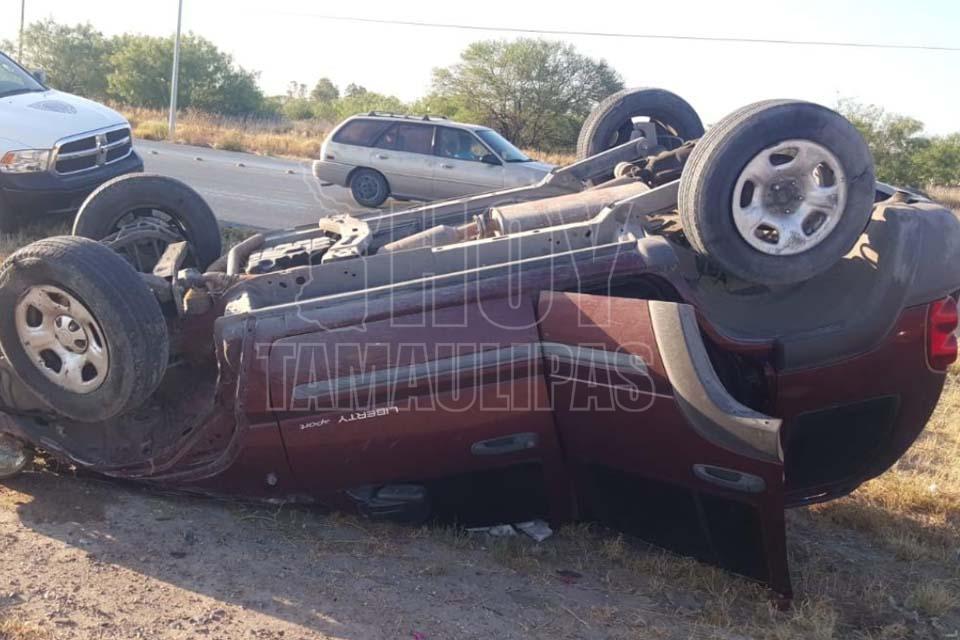Abandonan camioneta tras volcarla en Nuevo Laredo