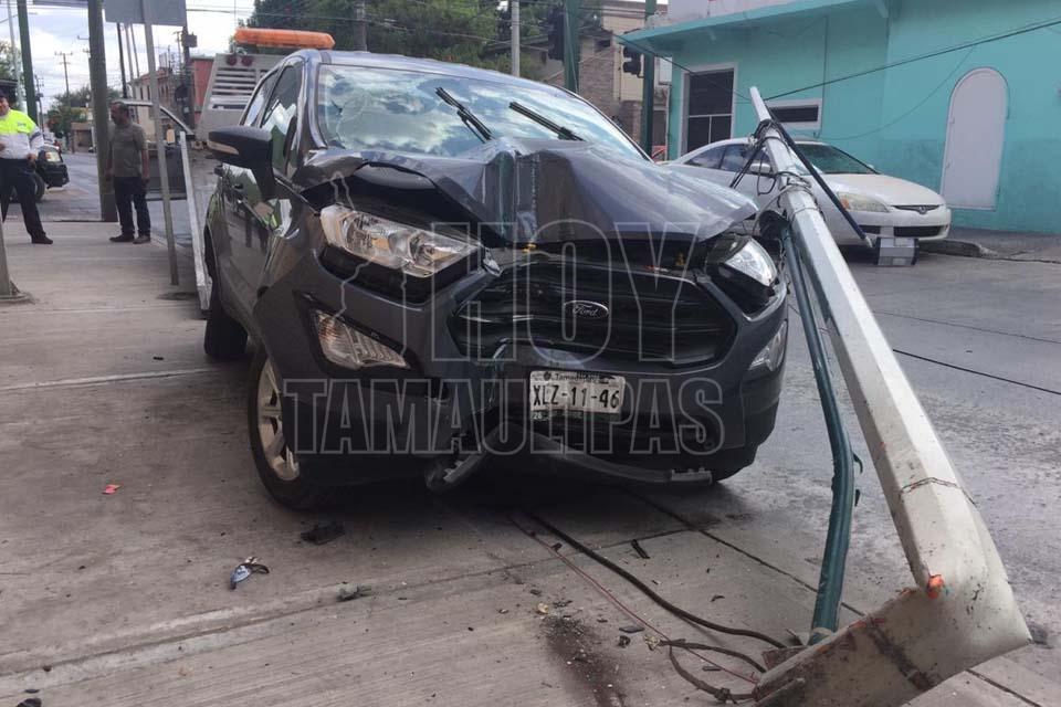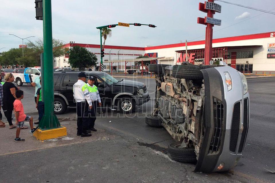 Se pasa el alto y termina volcado en Nuevo Laredo