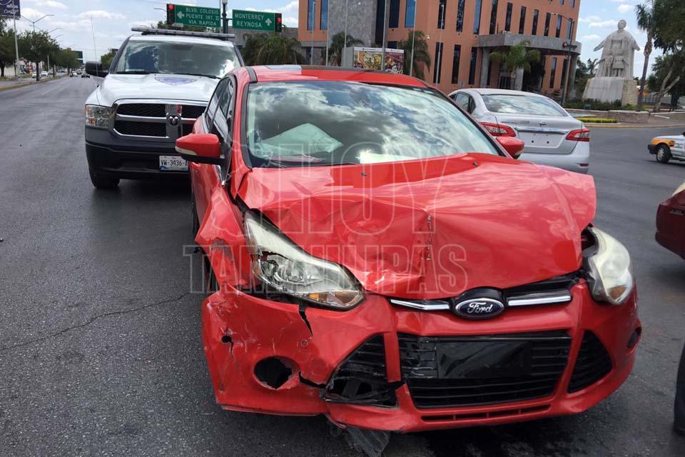 Choca trailero de reversa contra camioneta en Nuevo Laredo