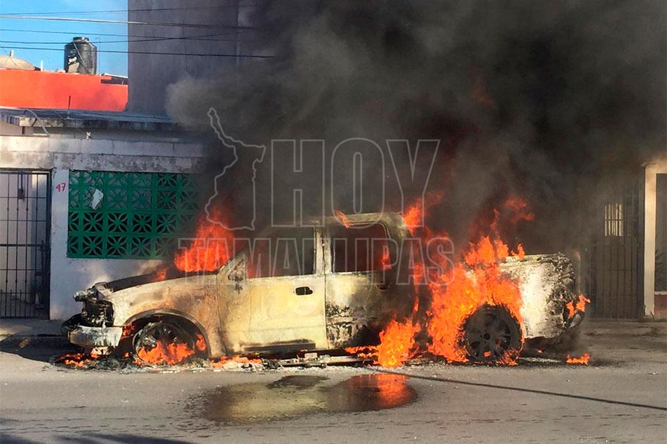 Se incendia camioneta y el fuego la consume en Nuevo Laredo