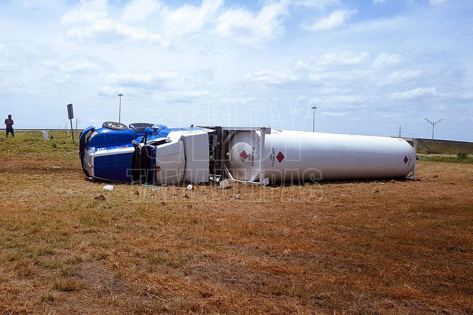 Vuelca tráiler con gas en cerca de Puente 3 de Nuevo Laredo