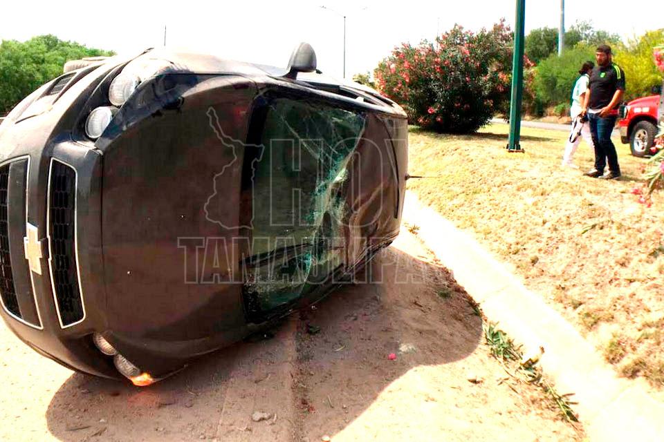 Muere mujer al chocar y volcar en Nuevo Laredo