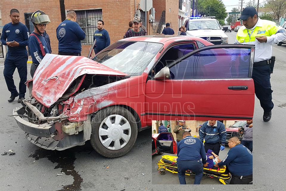 Se pasa el alto y lo chocan en Nuevo Laredo; una lesionada