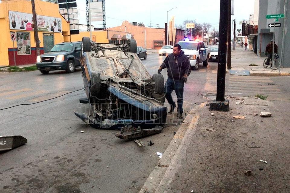 Dos lesionados deja choque con volcadura en Nuevo Laredo